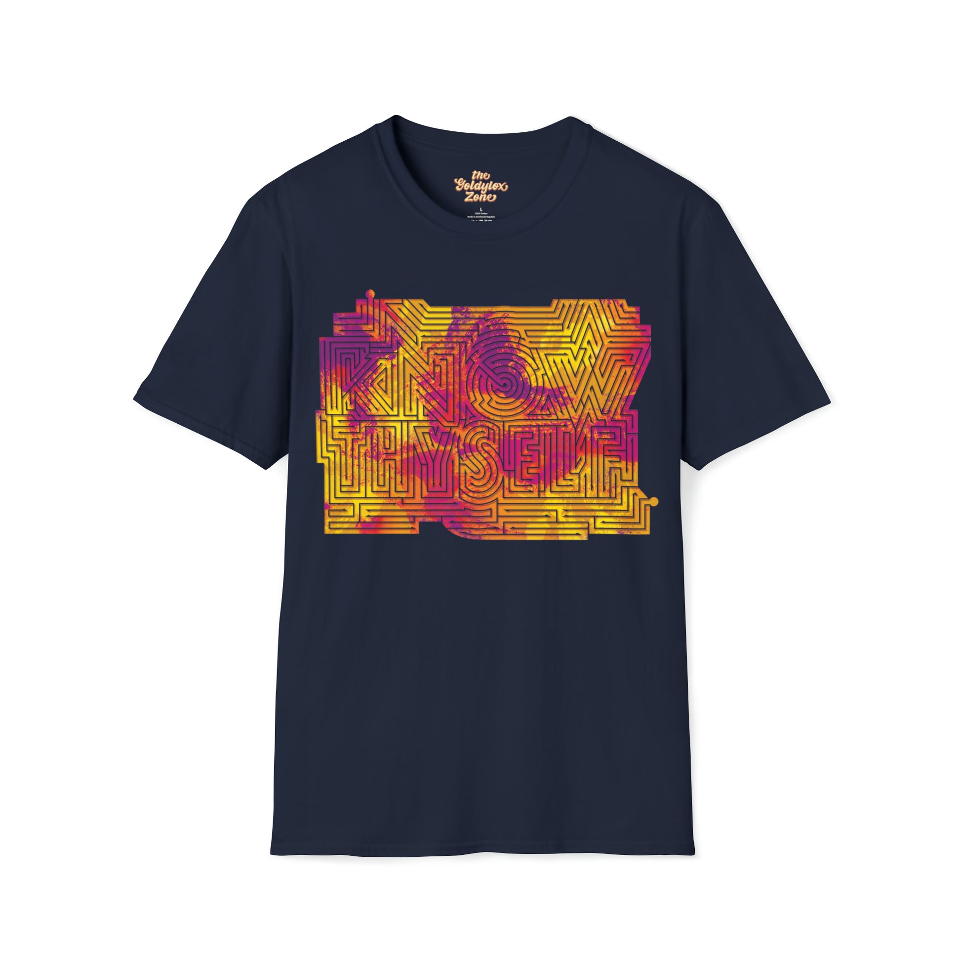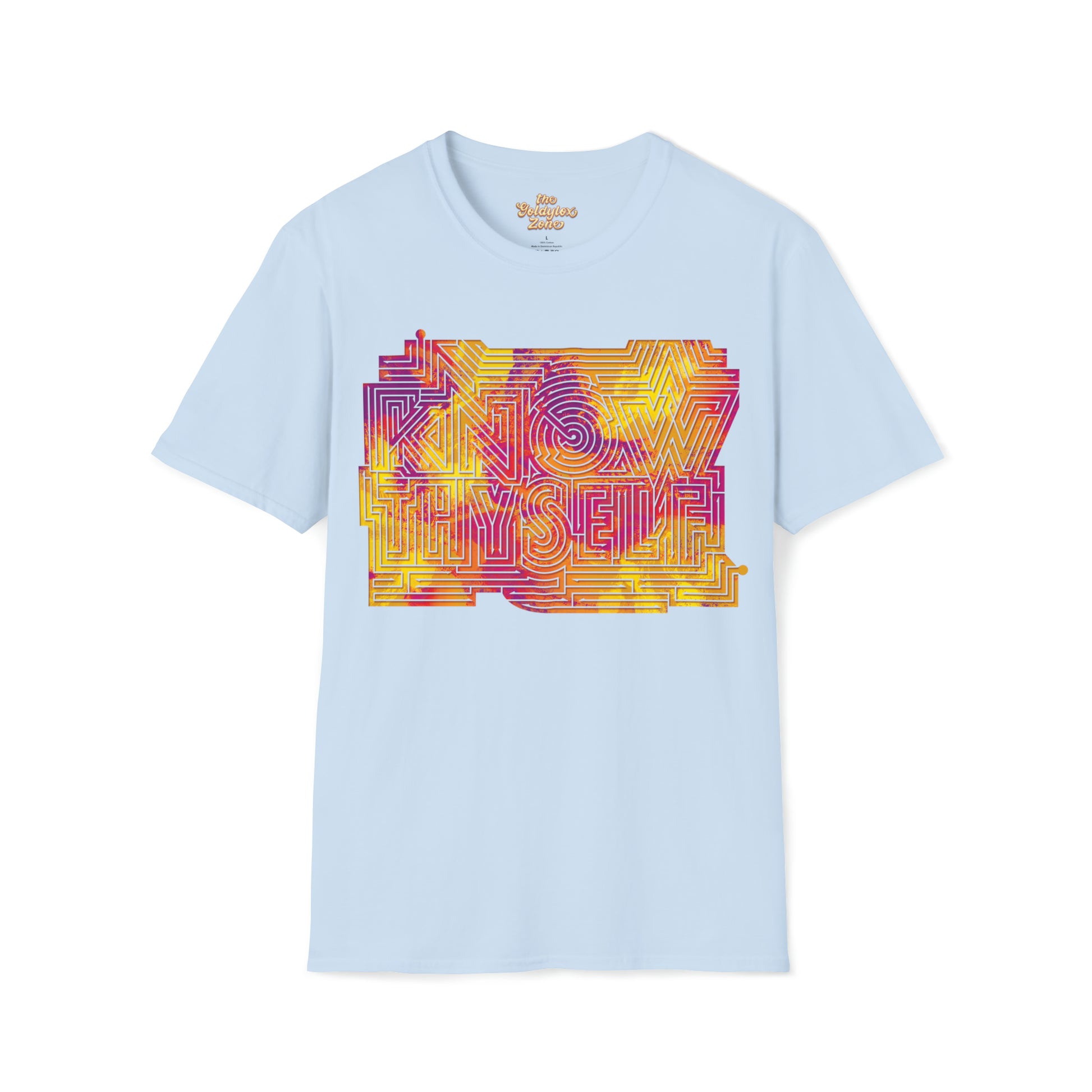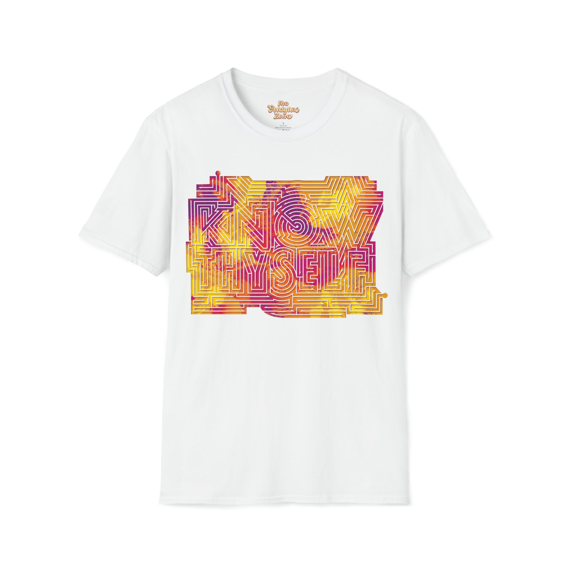 The message contained in this shirt is an important one that each of us will spend our entire lives working on! This t-shirt serves as a little reminder to learn about who you are and what makes you you! Also, its a maze and you can solve it!