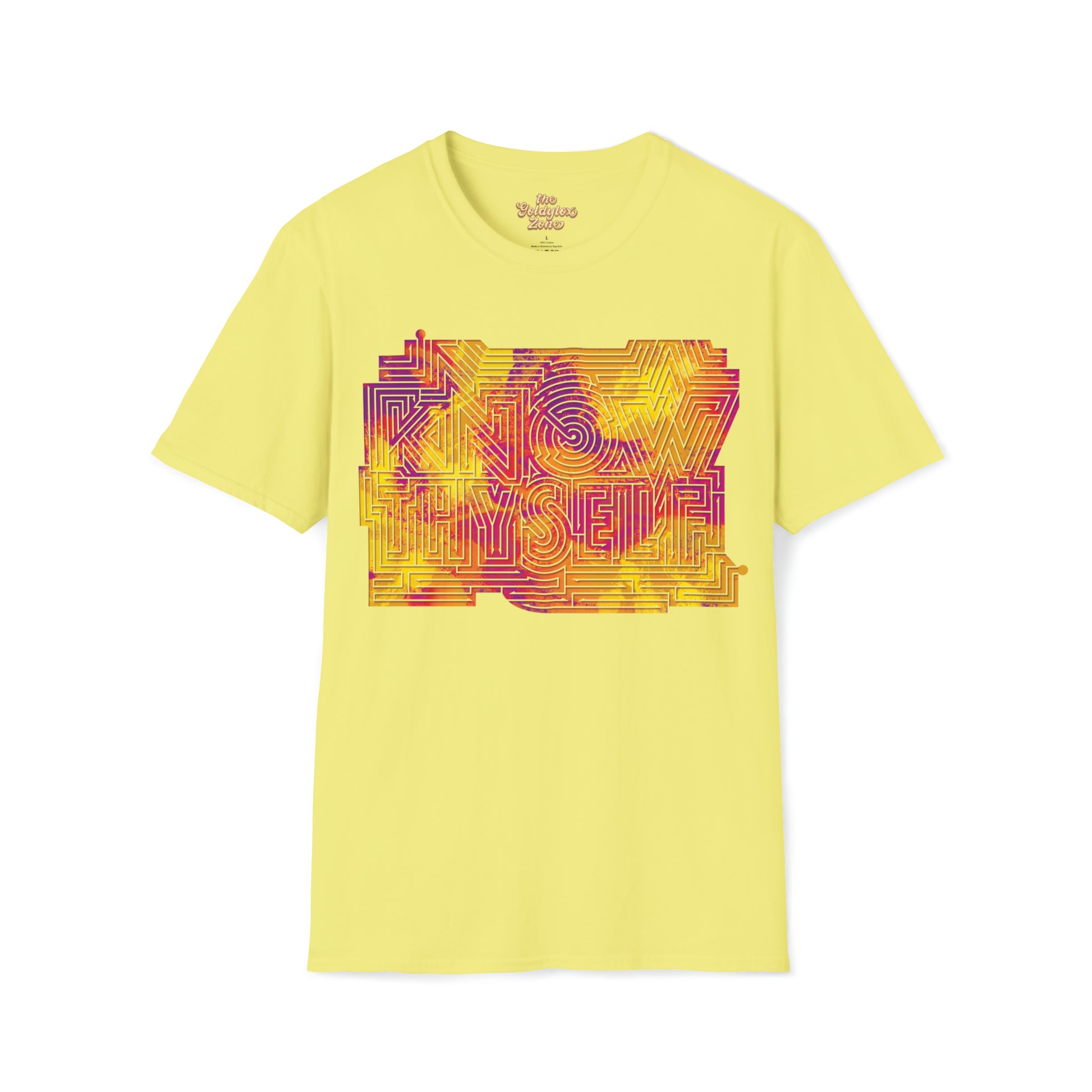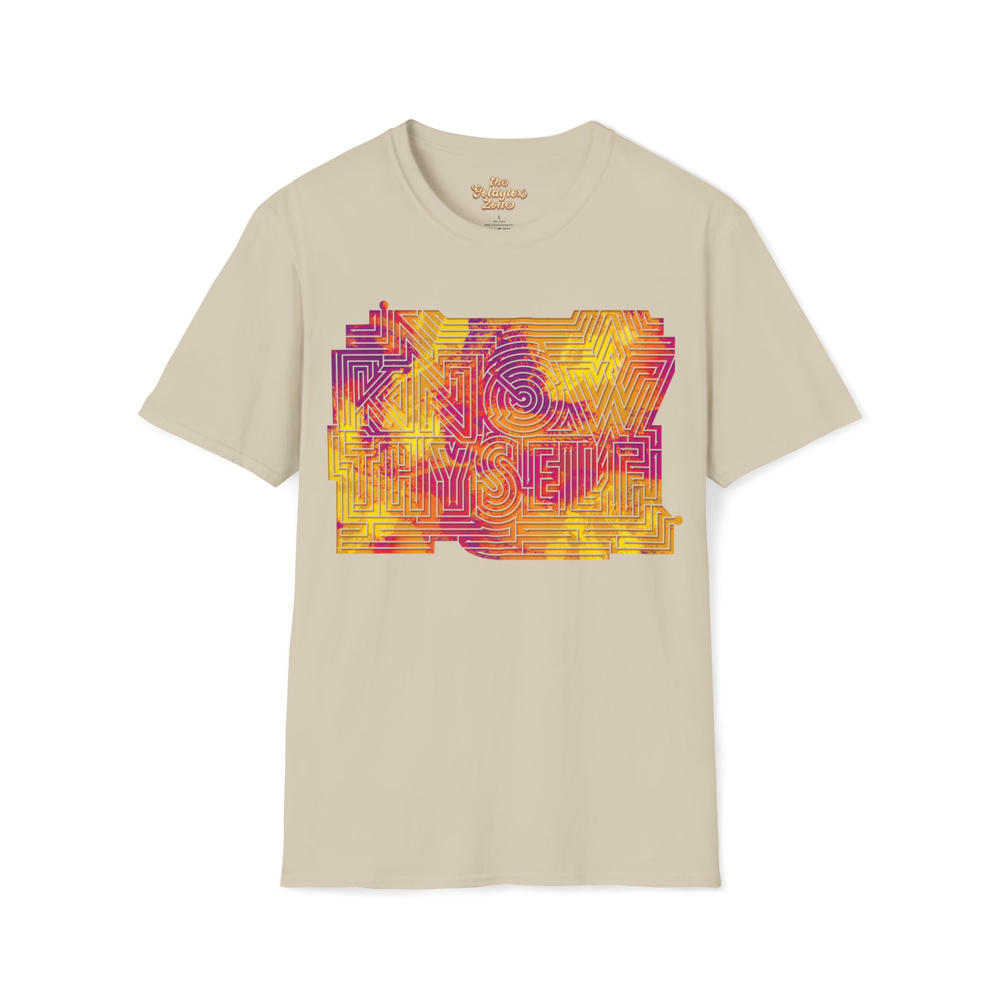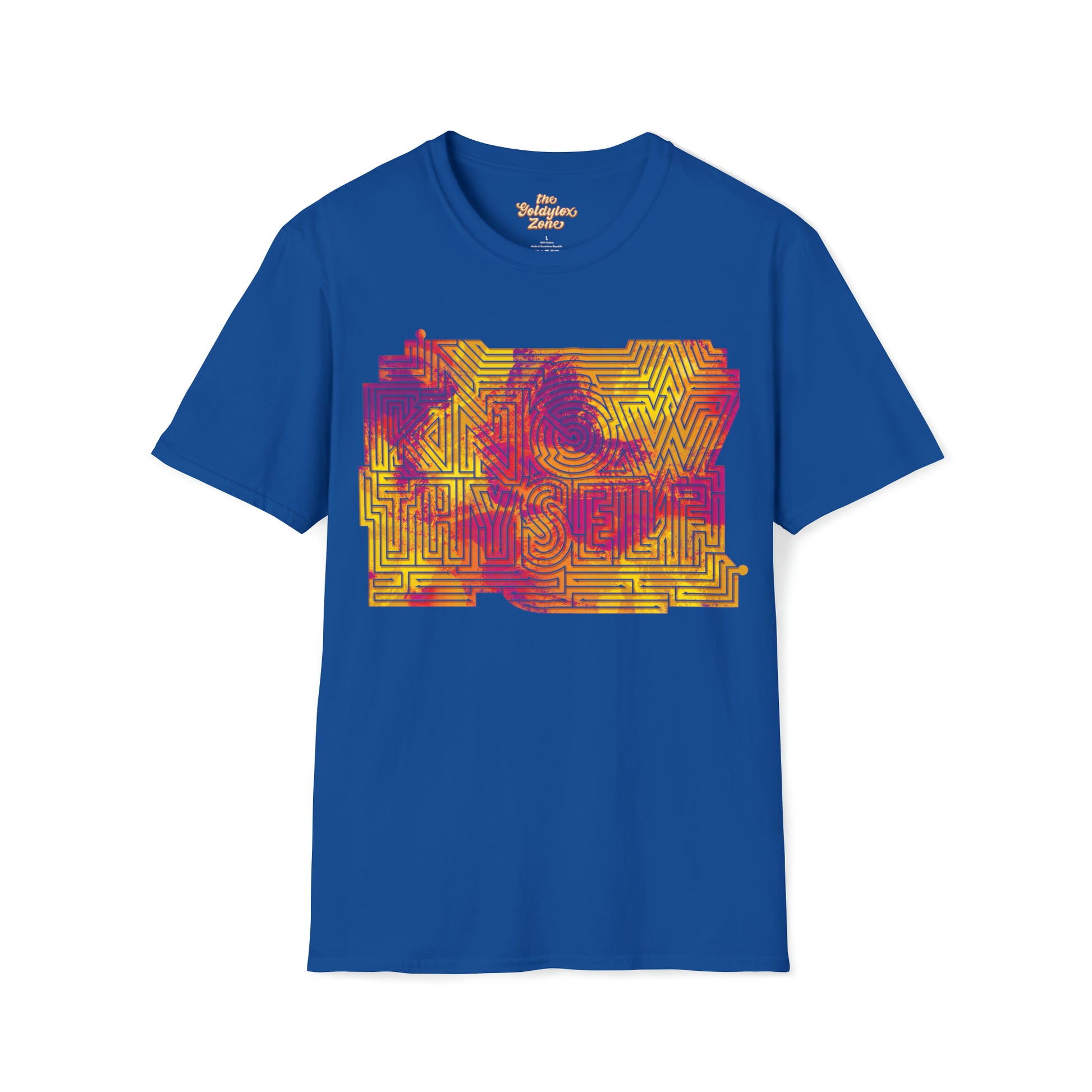 The message contained in this shirt is an important one that each of us will spend our entire lives working on! This t-shirt serves as a little reminder to learn about who you are and what makes you you! Also, its a maze and you can solve it!