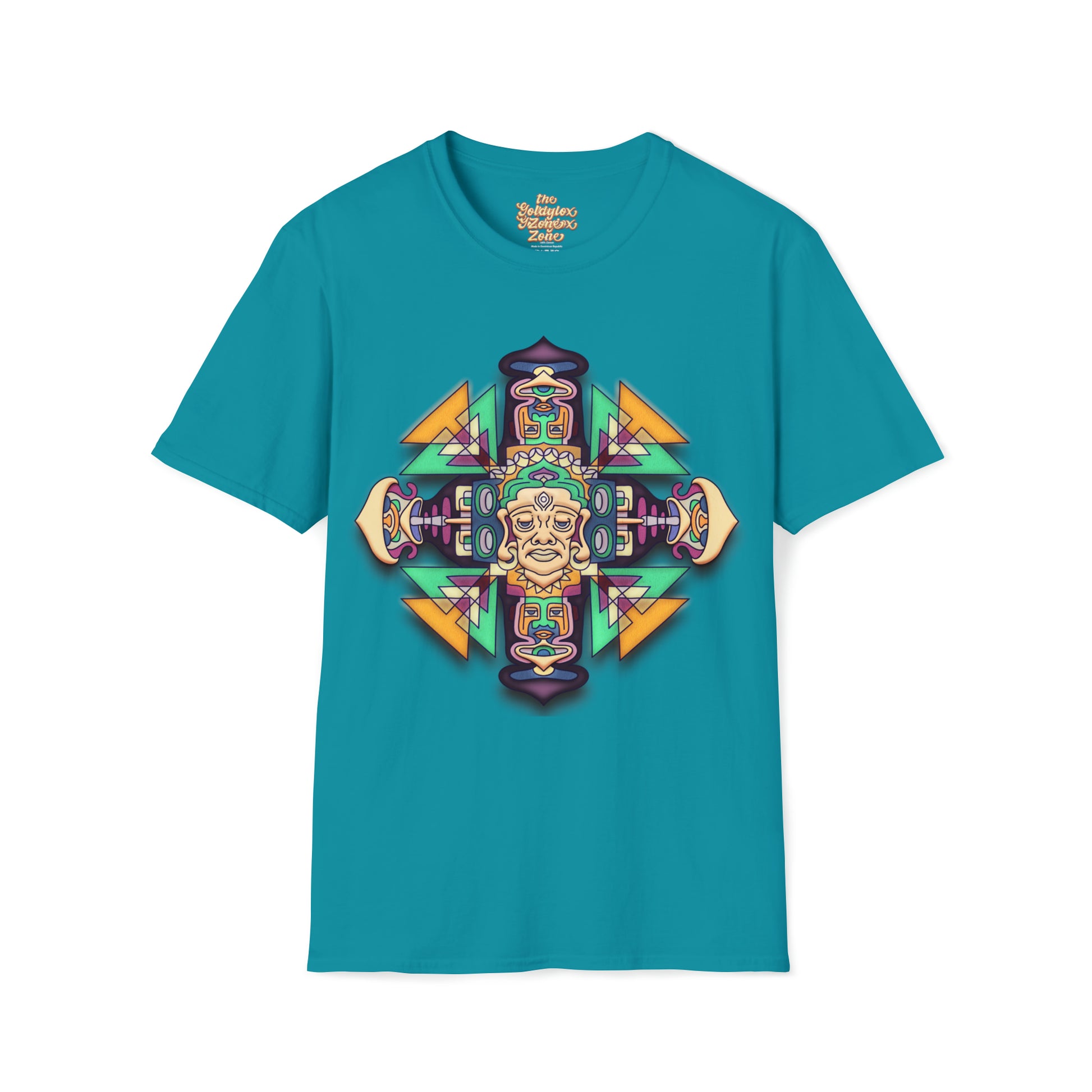 This piece of art was inspired by, you guessed it, magic mushrooms! The colors in this shirt are bright and buzzing and it is a good pairing with any of your psychedelic escapades!