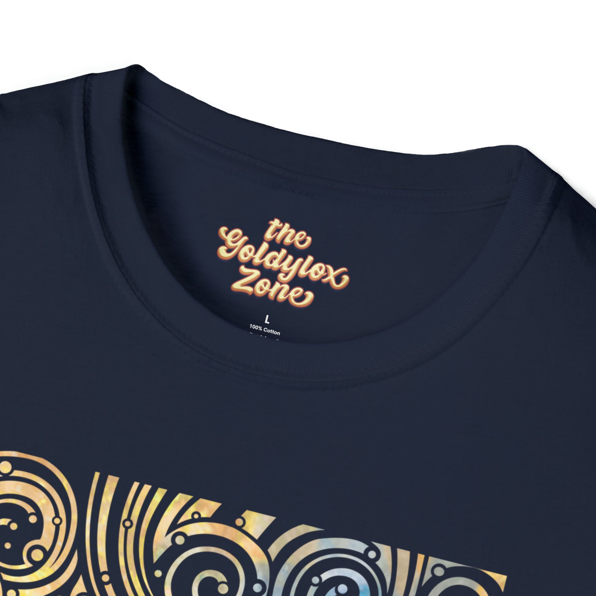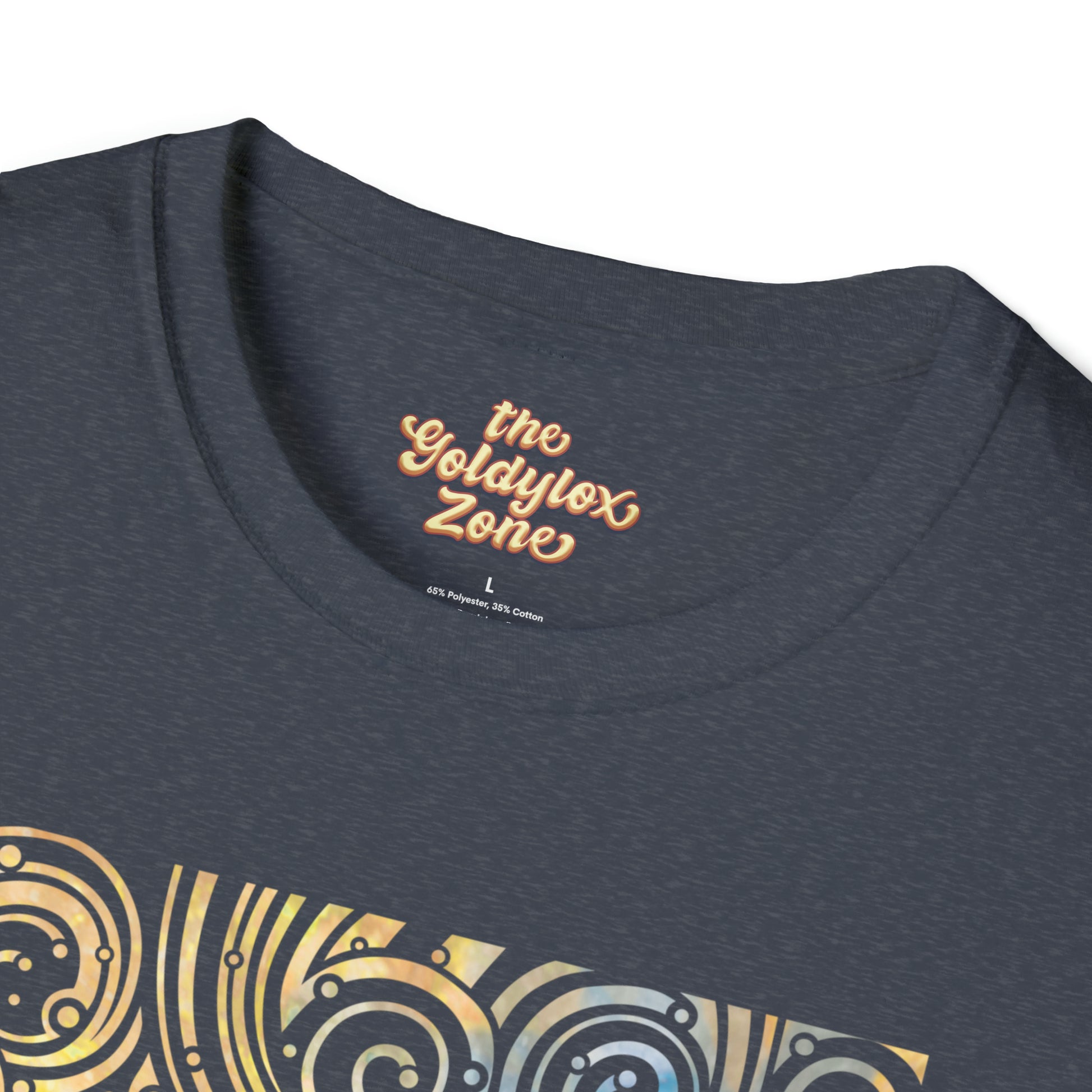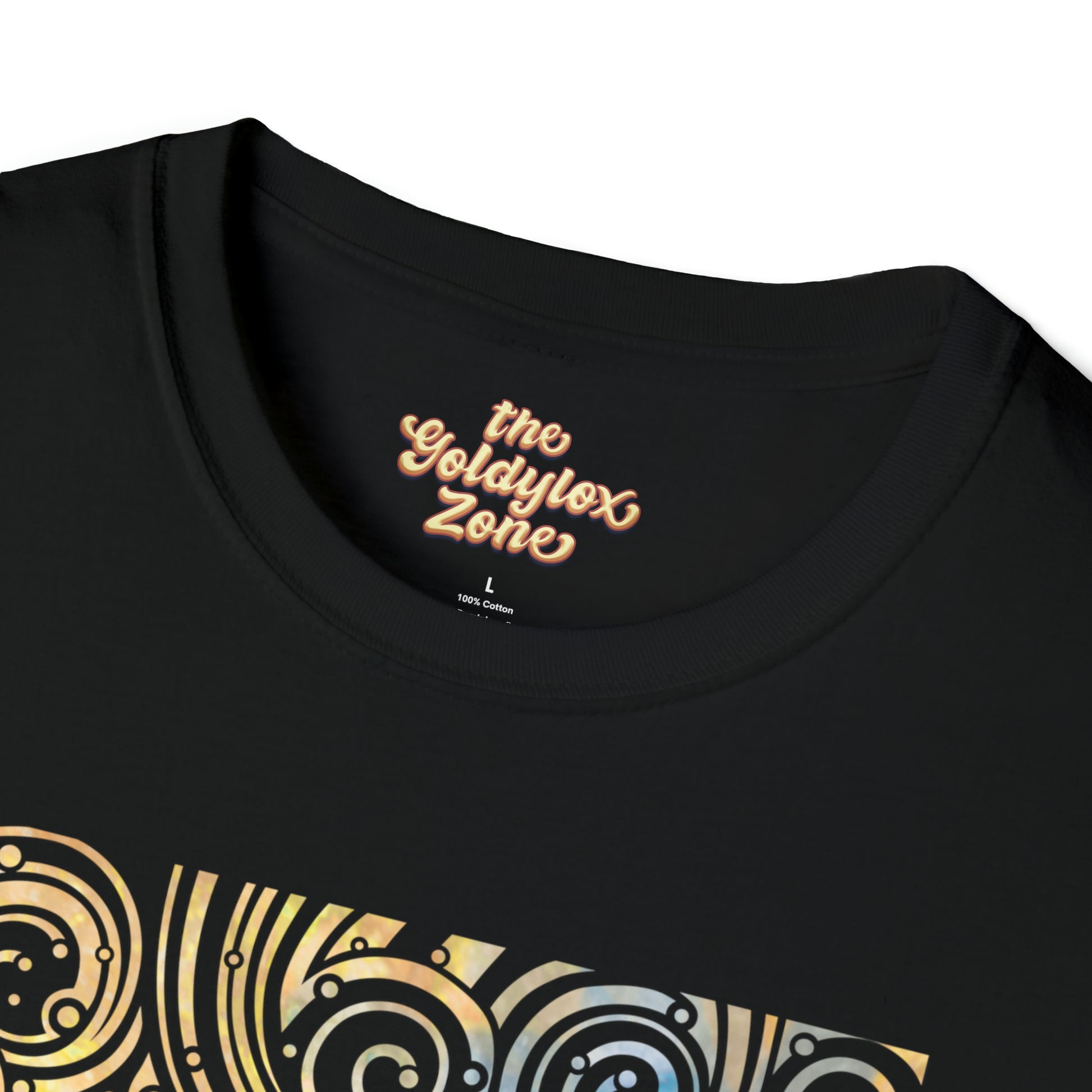This wild and psychedelic design was created by Goldylox in homage to one of his favorite artists, Si Scott. Goldy had fun dancing in the interplay between postitive and negative space in this design. This version is transparent and is designed for darker shirts.