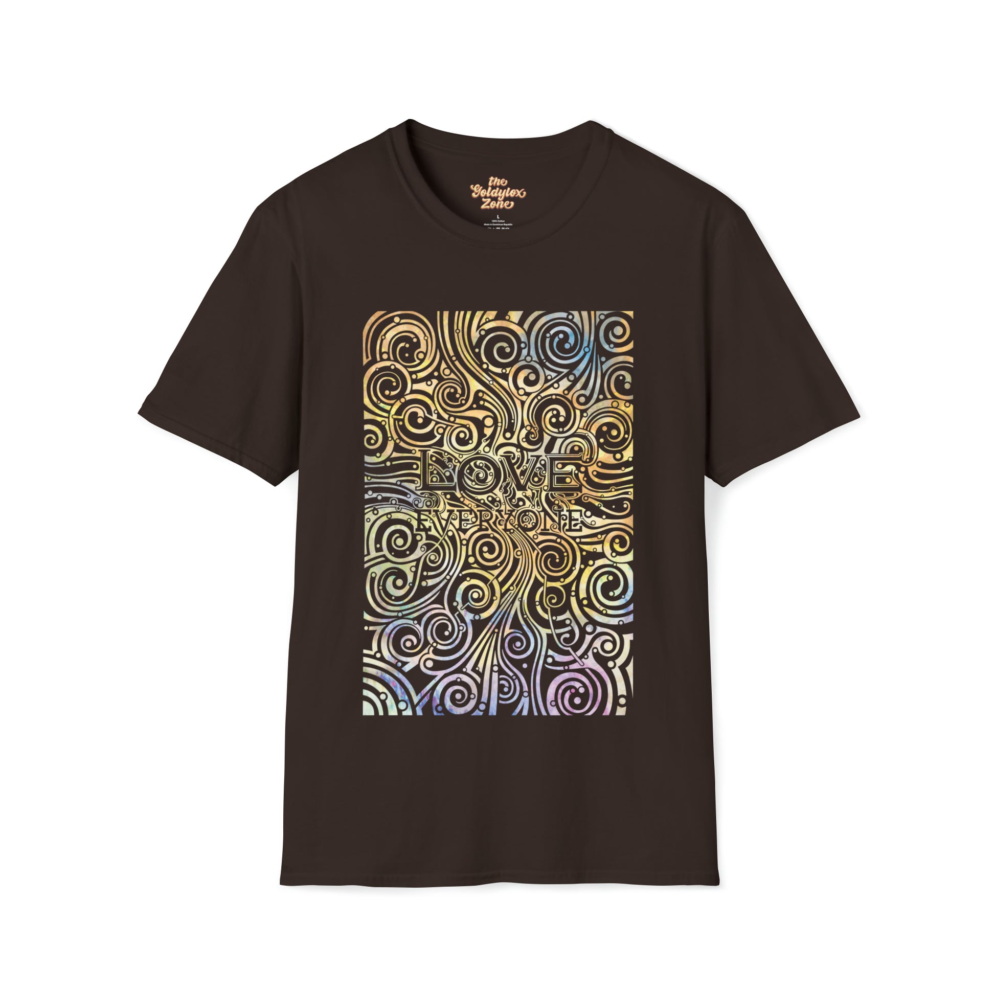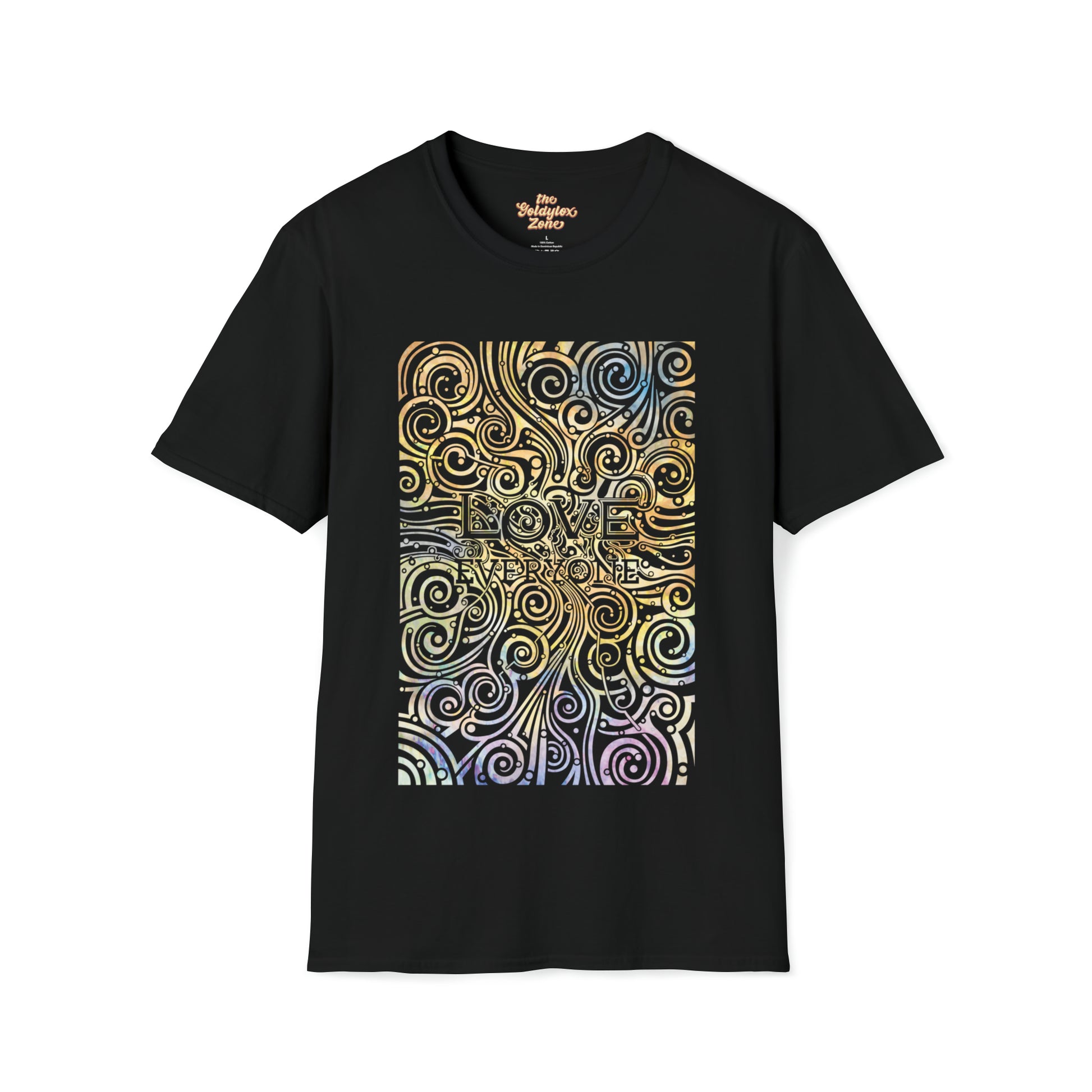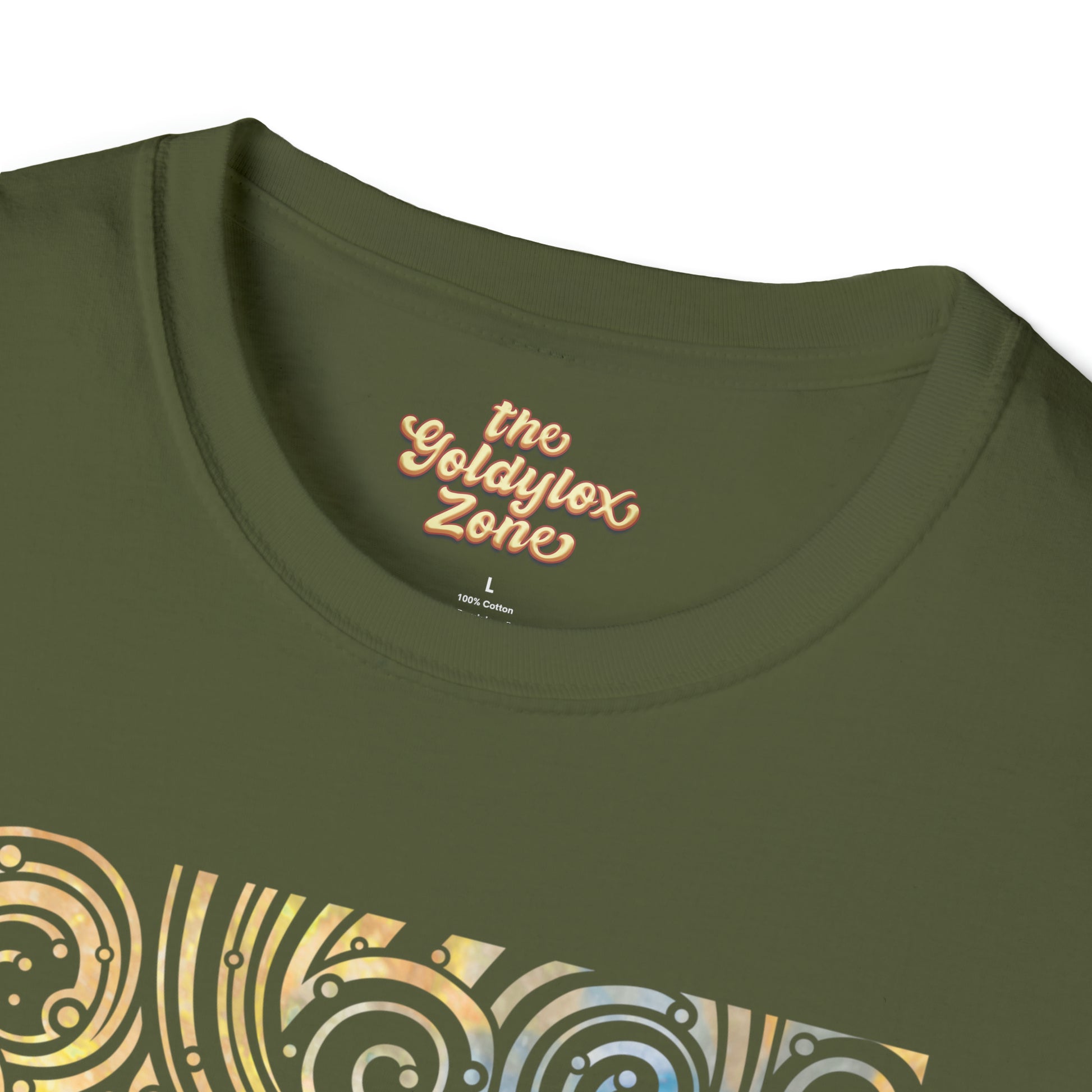 This wild and psychedelic design was created by Goldylox in homage to one of his favorite artists, Si Scott. Goldy had fun dancing in the interplay between postitive and negative space in this design. This version is transparent and is designed for darker shirts.